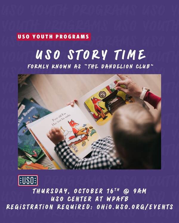Our new, monthly USO Story Time (previously known as “The Dandelion Club”) for parents and preschool age children (target ages 3-5) meets every third Thursday at 9:00 AM. We’ll be reading a book, do a craft, and enjoy a healthy snack while making new friends with other young families. Open to currently serving military families (active duty, guard, and reserve).