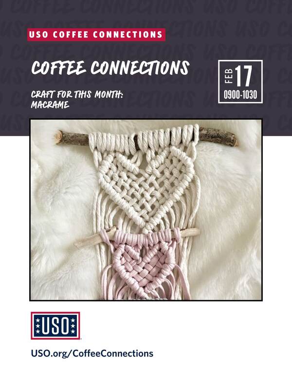 Join us for a relaxed and creative morning at our next USO Coffee Connection. This special event is designed for military spouses to connect, unwind, and get crafty! While you create, your kids can enjoy playtime, giving you a chance to chat and bon…