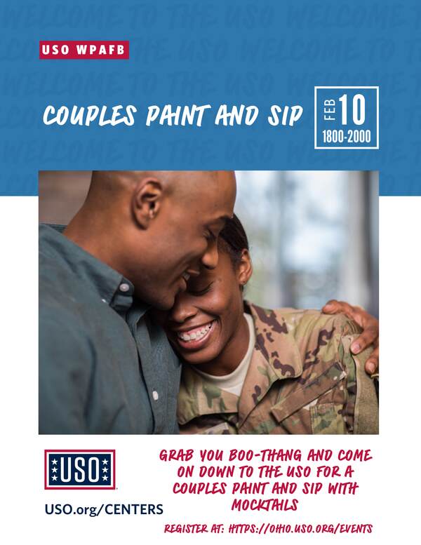 Grab your boo thang and come on down to the USO for a couples night with painting and mocktails! The painting will be paint by number with theme selection (Valentine’s Day, His/Hers Deer, Beach Sunset, His/Her Boots/Heels.