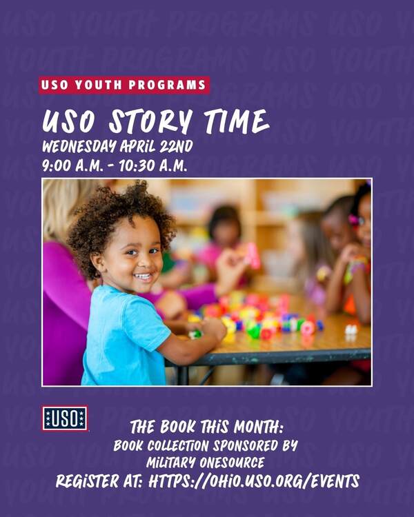 Our new, monthly USO Story Time for parents and preschool age children (target ages 3-5) will meet every 4th Wednesday from 9:00 a.m. - 10:30 p.m. We’ll join gather together to read a book, do a craft, and enjoy a healthy snack while making new friends with other young families. Open to currently serving military families (active duty, guard, and reserve). Registrations are first come, first serve.